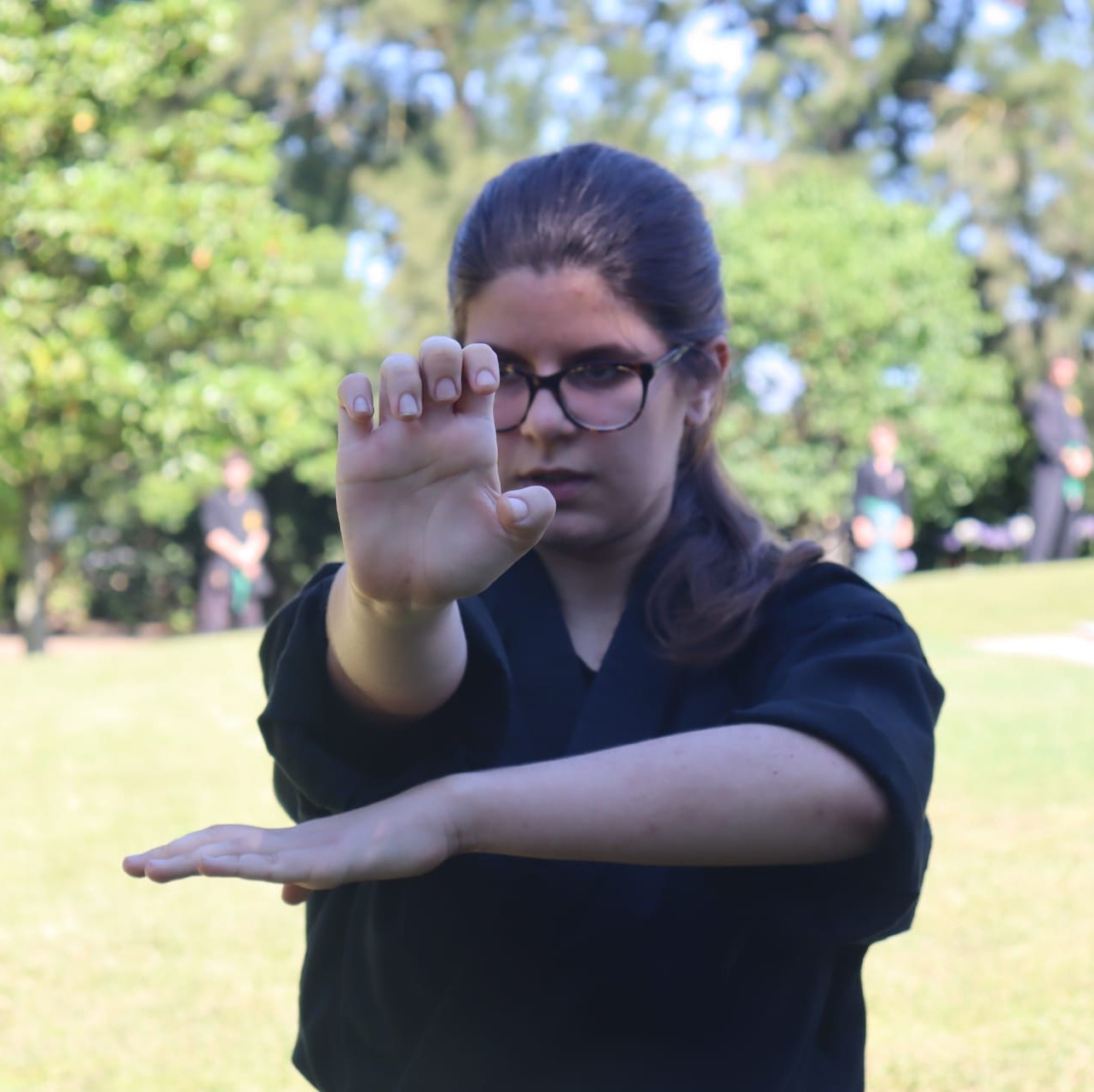 “Cobrir o Punho”/”Guardar o Tesouro”. Tal como se ilustra com a mão direita em forma de punho e a mão esquerda cobrindo o punho, significa que o punho é como um tesouro guardado numa bolsa e não deve ser exposto em público, devendo por isso ser preservado.